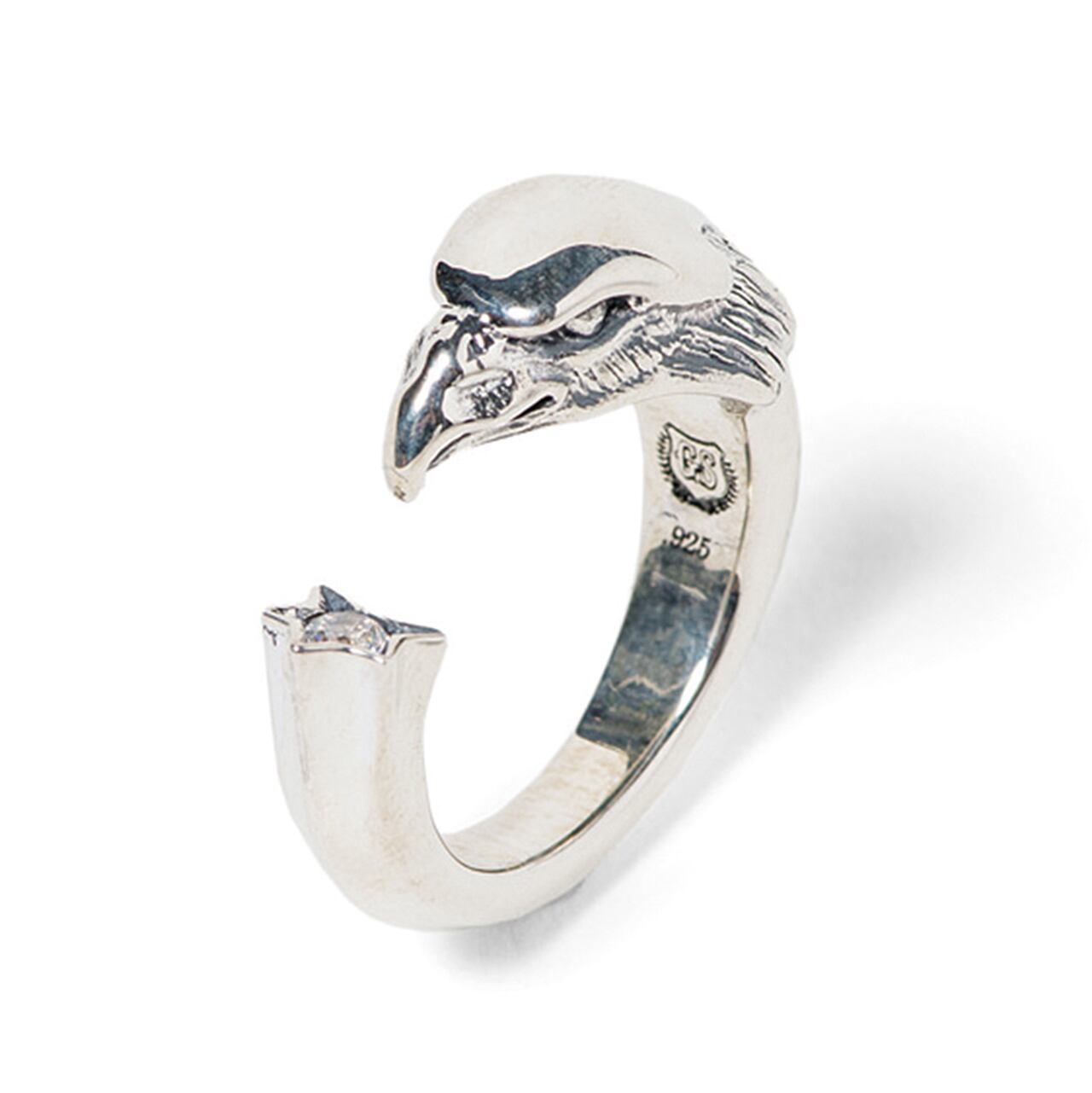GRAVYSOURCEの象徴であるイーグルの顔とワンスターをデザインしたシルバー925素材を使用したオリジナリティ溢れるリング。立体感のある繊細なフォルムはどんなスタイルにも合わせることが可能です。